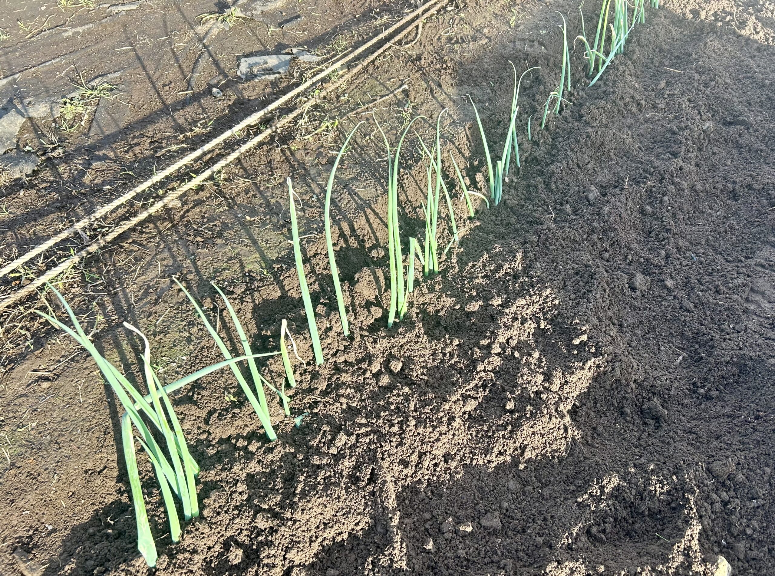まだ苗はとても細い。昨夜の雨は強かったし、このところ、雨が降らない週はない。春の九条ネギは苗植え直後の雨で根腐れしてしまって、収穫が少なかったから、まだ心配だ。頑張れ、冬の太ネギ。
